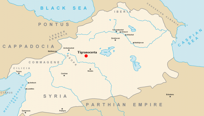 To create this city, Tigranes forced many people out of their homes to make up the population. New Armenian capital had more then 100 thousand population. Armenia at this time had expanded east to the Caspian Sea, west to central Cappadocia, and south towards Judea, advancing as far as the regions surrounding what is now the Krak des Chevaliers. A Roman force under Lucius Lucullus defeated Tigranes at the Battle of Tigranocerta nearby in 69 BC, and afterwards sacked the city, sending many of the people back to their original homes.